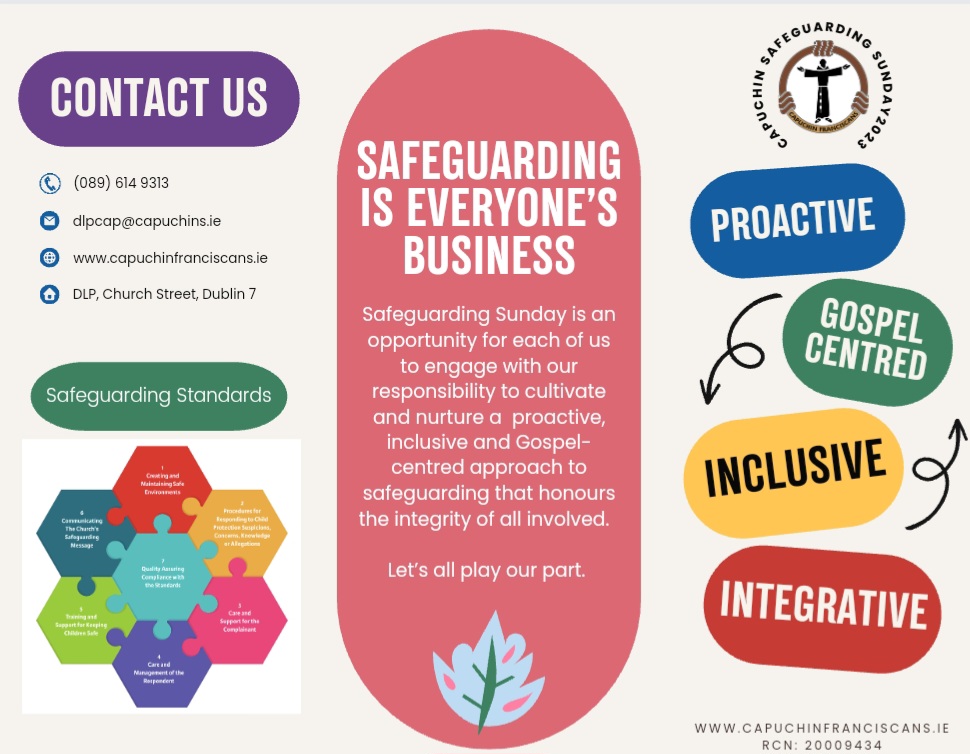 This year’s theme for our Safeguarding Sunday is ‘Safeguarding is everyone’s business’. Please see our Safeguarding brochure to be distributed at all Capuchin Friaries and Churches this weekend.