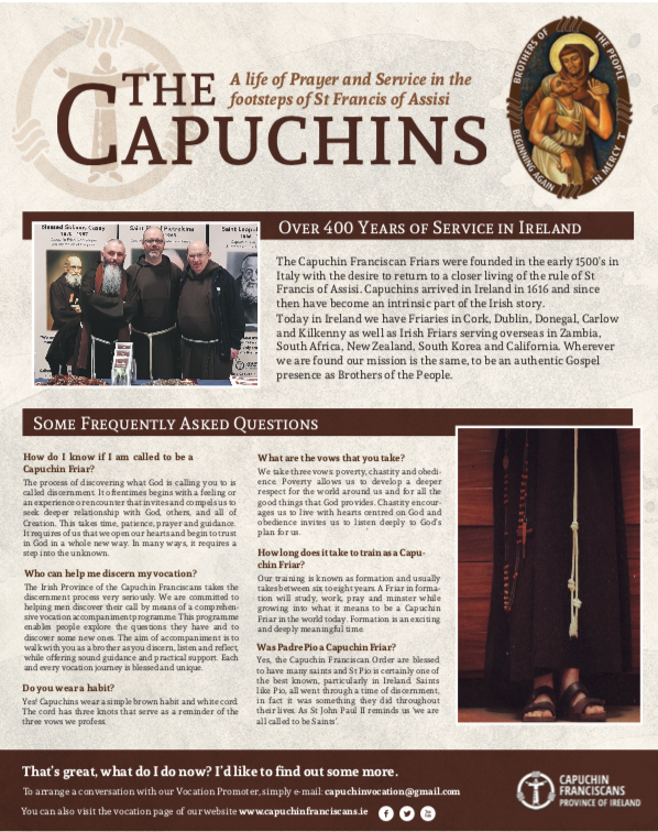 The week’s issue of the Irish Catholic Newspaper contains a feature to mark the World Day of Prayer for Consecrated Life on the 3rd of February – Feast of the Presentation of the Lord. This feature contains an interview with Brother Martin Bennett OFM Cap. (Parish Priest and Provincial Director of Communications for the Irish Capuchin Friars)