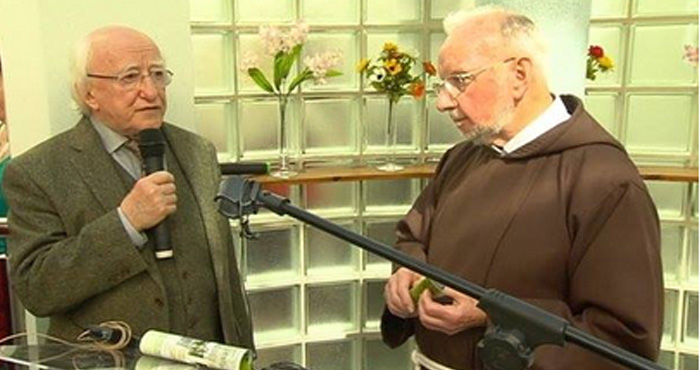 Brother Paul Murphy presented President Higgins with a reprinted copy of the 1966 Capuchin Annual on behalf of the Capuchin Provincial, Brother Adrian Curran, and all the Capuchin Friars.